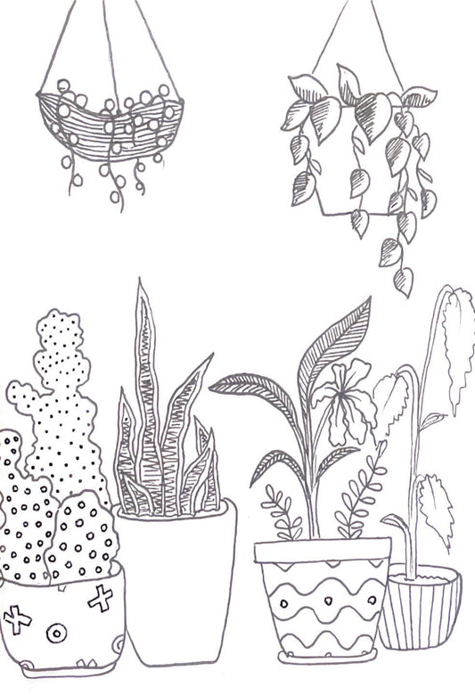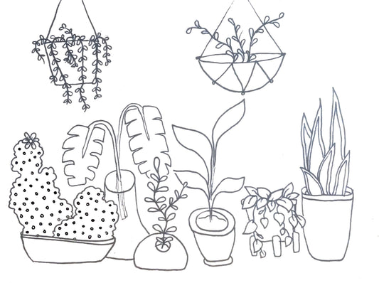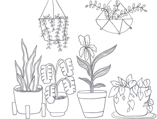 4.25x5.5 B&W Indoor Plant Fold-over Cards Stationery Set (2 cards)